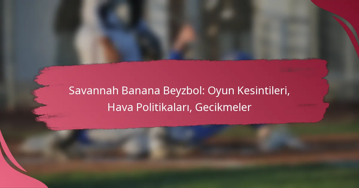 Savannah Banana oyunlarındaki oyun kesintileri hava koşulları, elektrik kesintileri ve diğer öngörülemeyen durumlar gibi nedenlerden kaynaklanabilir ve her biri belirli protokoller gerektirir. Organizasyon, oyunların ertelenmesi veya iptal edilmesi konusunda kararları yönlendiren net hava politikaları uygulayarak taraftarların güvenliğini ve keyfini önceliklendirir. Gecikmeler sırasında etkili iletişim, taraftarların bilgilendirilmesini sağlamak ve kesintilere rağmen deneyimlerinden keyif almalarını sağlamak için esastır.